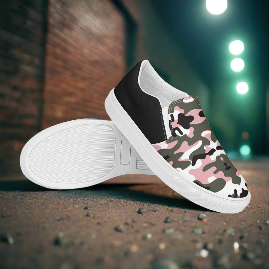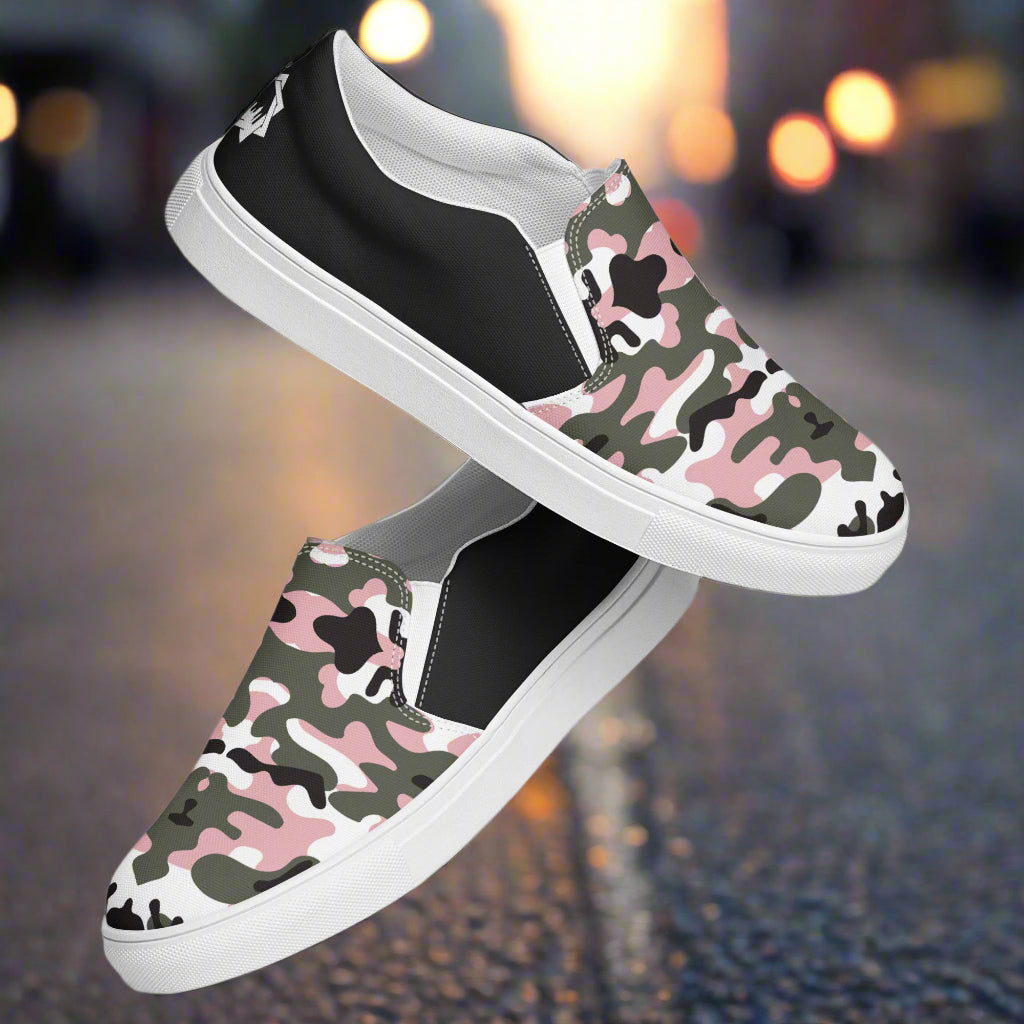 GeoMetro | Women’s Slip-On Canvas Shoes | Pink Black Camo Halftone