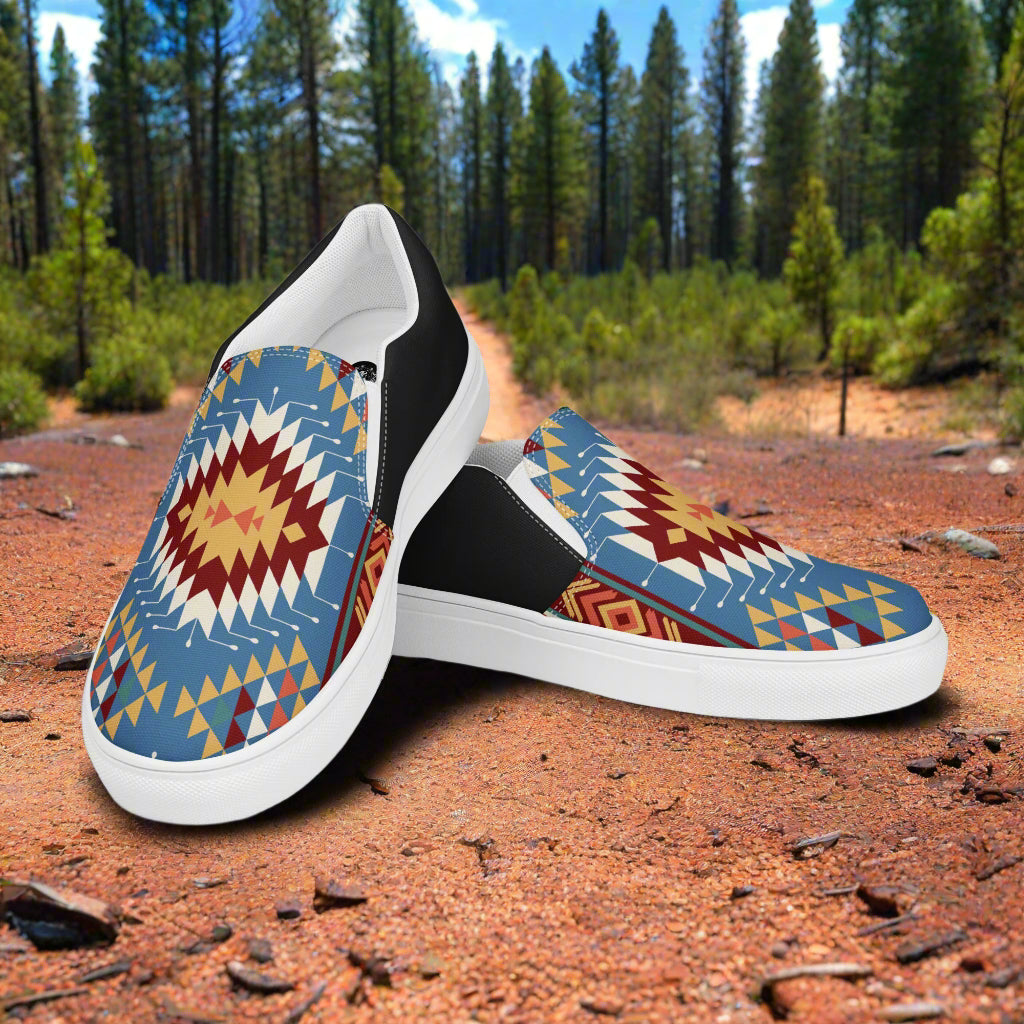 Step into comfort and style with the Slip-on Canvas Shoes Veyo Halftone from WildSage. These shoes are perfect for those who want to stand out. Featuring a vibrant Southwest-inspired design, they bring a unique twist to your footwear collection. Made from high-quality canvas, these shoes are lightweight and breathable, ensuring comfort all day long.