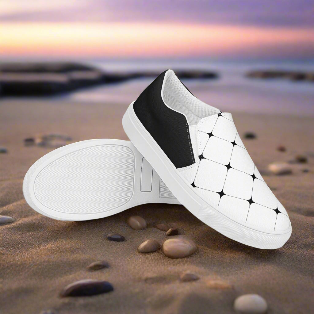 With their clean white base and bold halftone design, the White Diamond Halftone Slip-on Canvas Shoes will surely catch the eye and distinguish you from the crowd. Add these shoes to your collection and embrace a fresh, trendy approach to casual footwear. Enjoy the blend of comfort and style with every step you take!